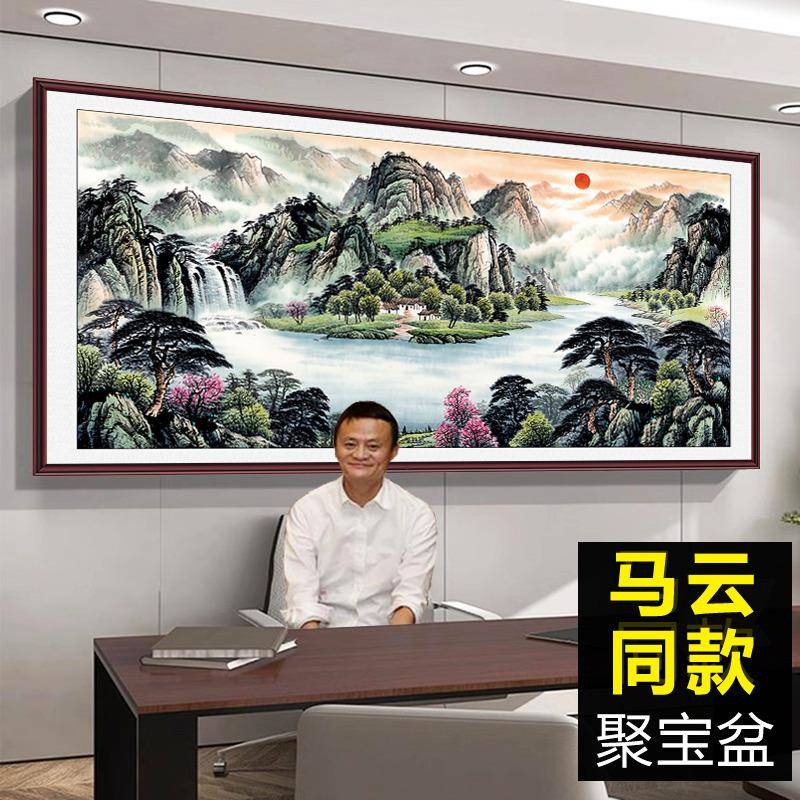 旭日东升聚宝盆山水画办公室背靠山风水聚财新款客厅装饰画自粘画