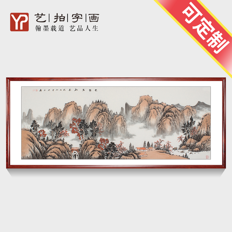 旭日东升国画山水画风水靠山图客厅装饰画招财办公室字挂壁画背胶