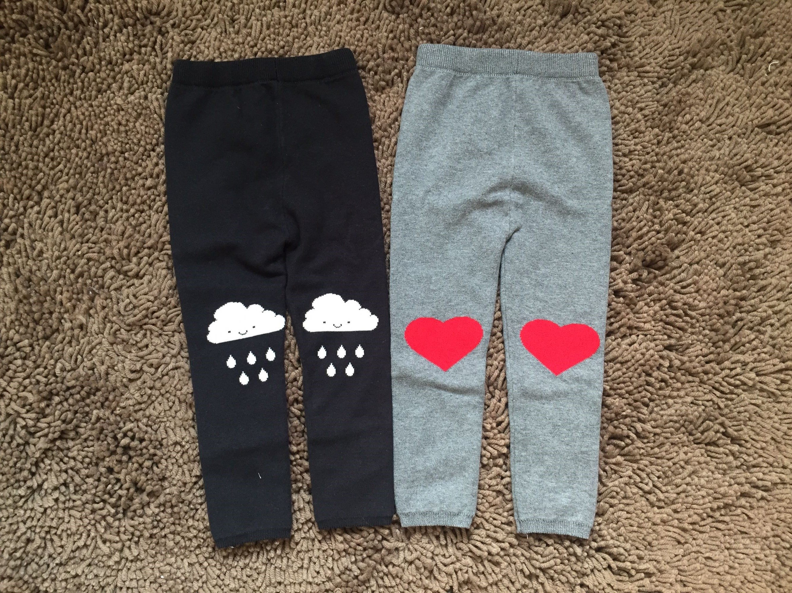 冬季童装女童雨滴毛裤 宝宝棉线裤子 打底裤小童灰色红心加绒毛裤