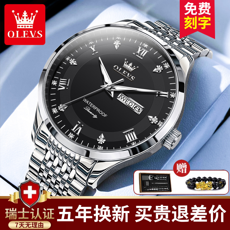 2025年新款瑞士品牌自动机芯男士手表日历防水夜光全自动石英潮表