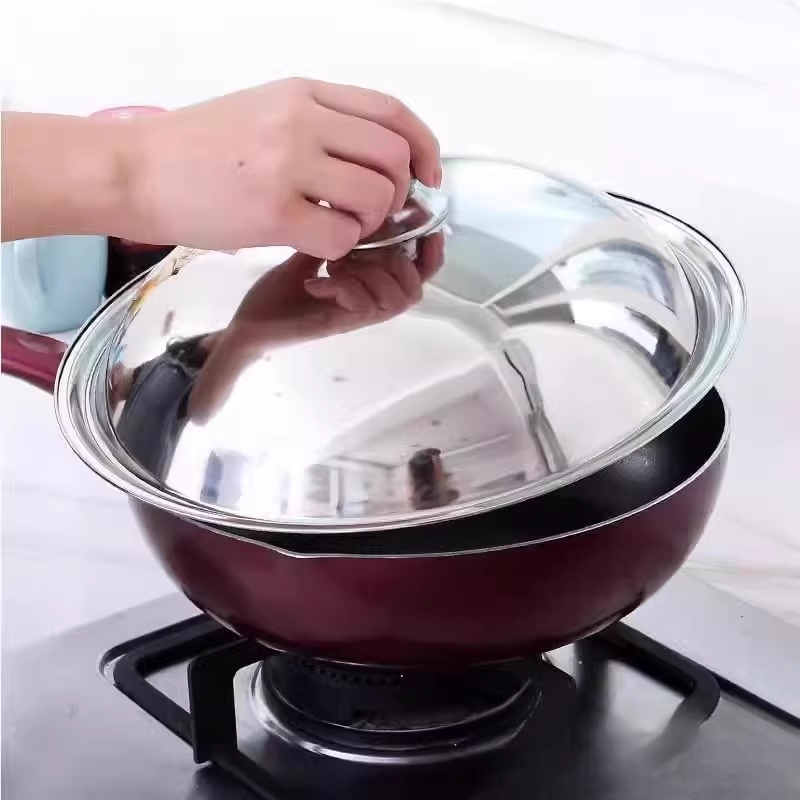 316食品级不锈钢锅盖家用炒菜锅盖子32cm34cm炒锅锅盖通用玻璃盖