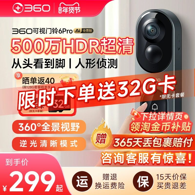 360可视门铃6Pro家用电子猫眼门口入户门智能门铃监控无线摄像头