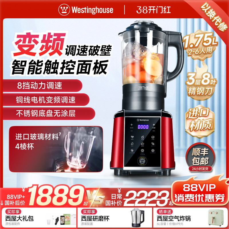 西屋多功能破壁料理机家用加热非静音清洗大容量绞肉触屏0455