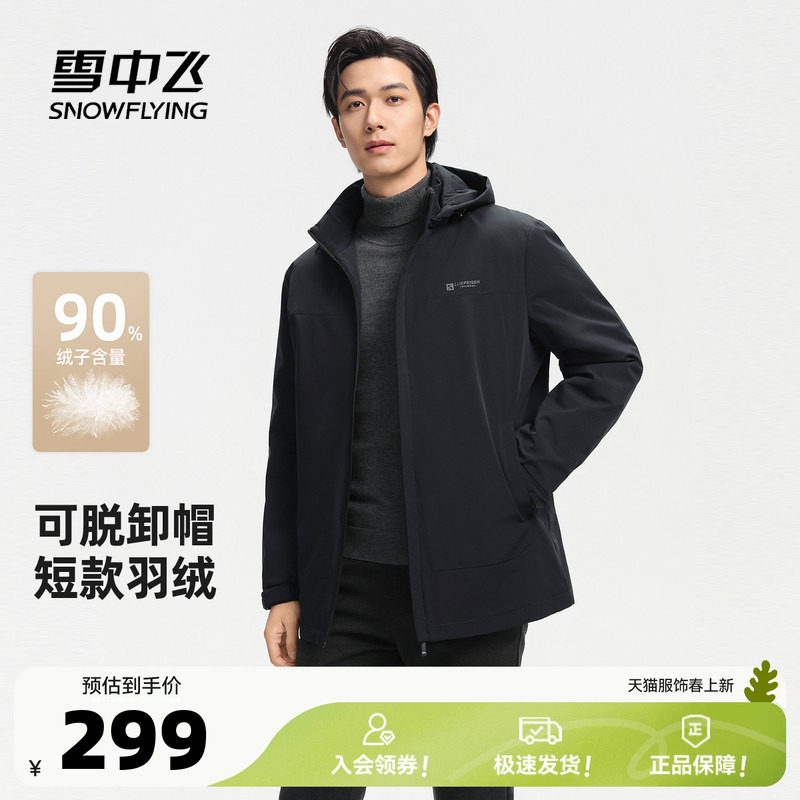 雪中飞男式羽绒服2025新款冬季外套短款加厚保暖连帽可脱卸鹅绒服
