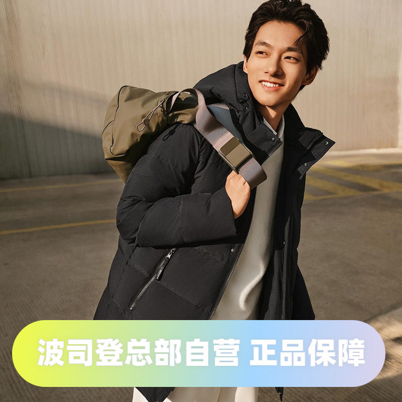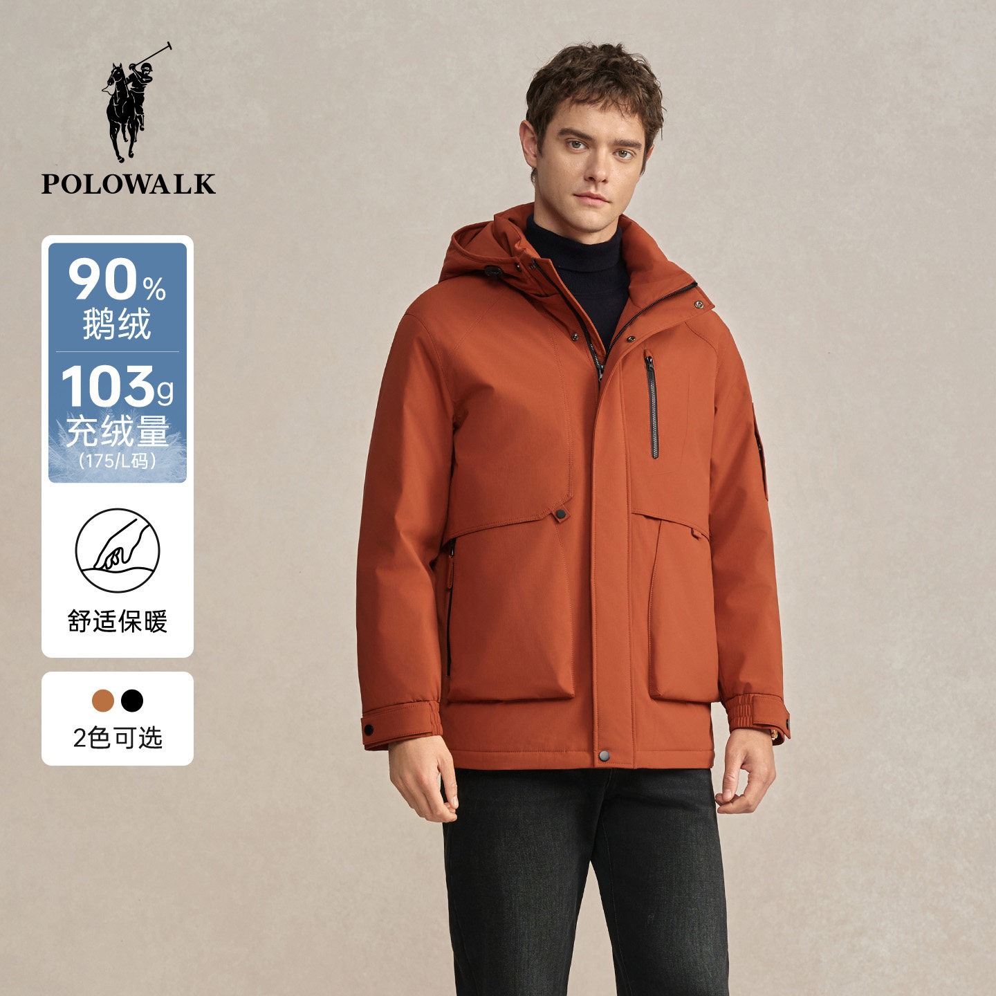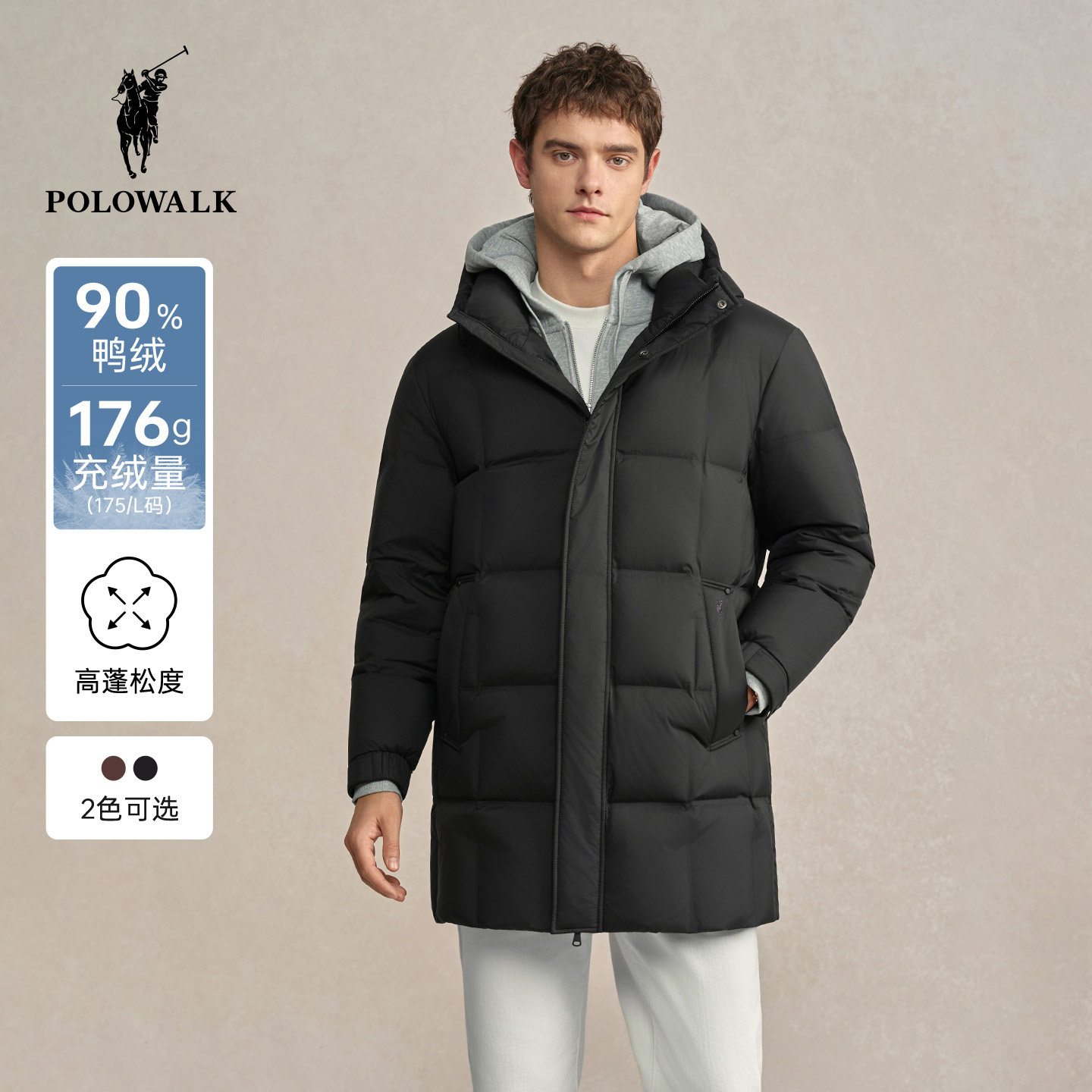 POLOWALK男式羽绒服2025冬季新品90鸭绒中长款连帽保暖羽绒服外套