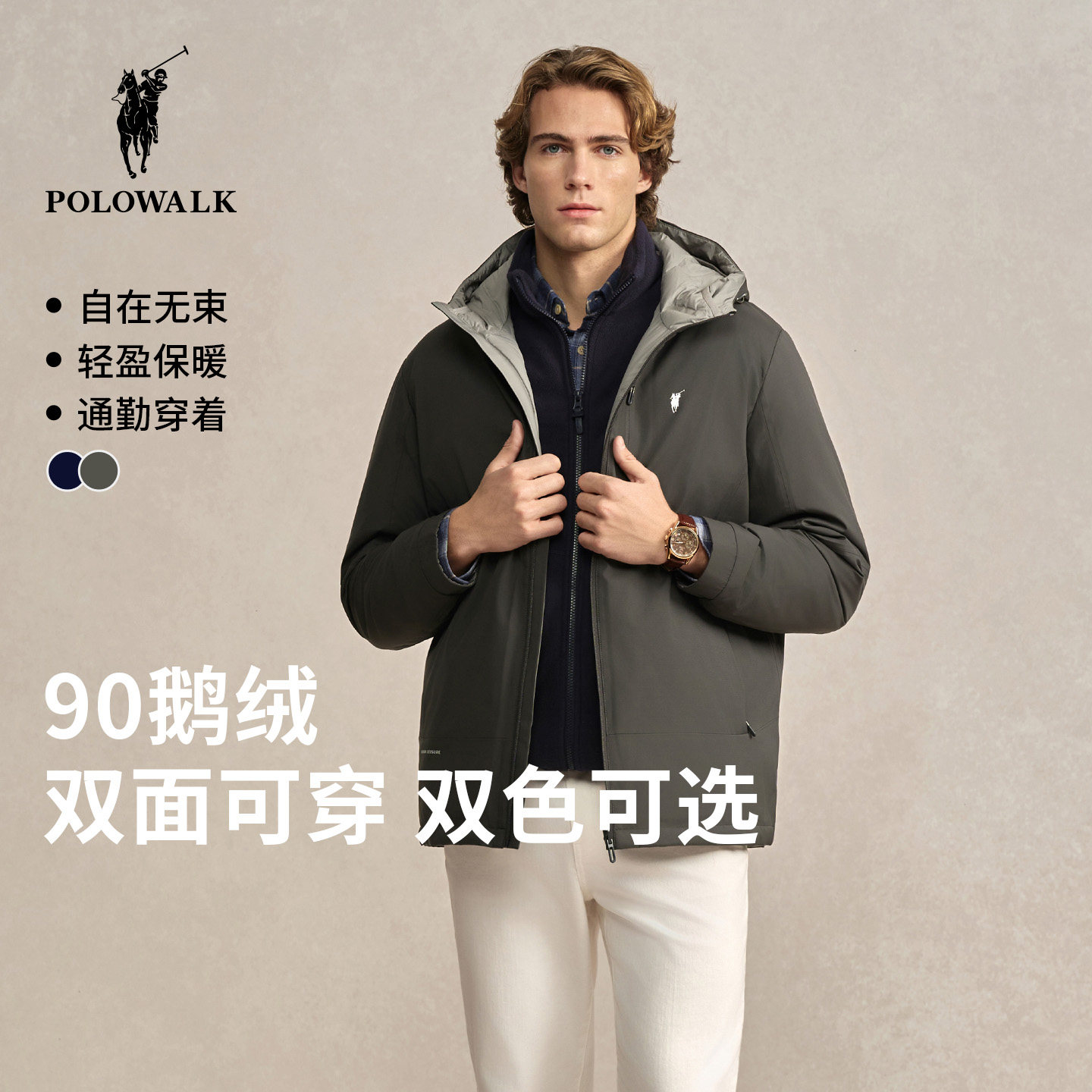 POLOWALK男式羽绒服2025冬季新品90鹅绒连帽两面穿商务羽绒外套男