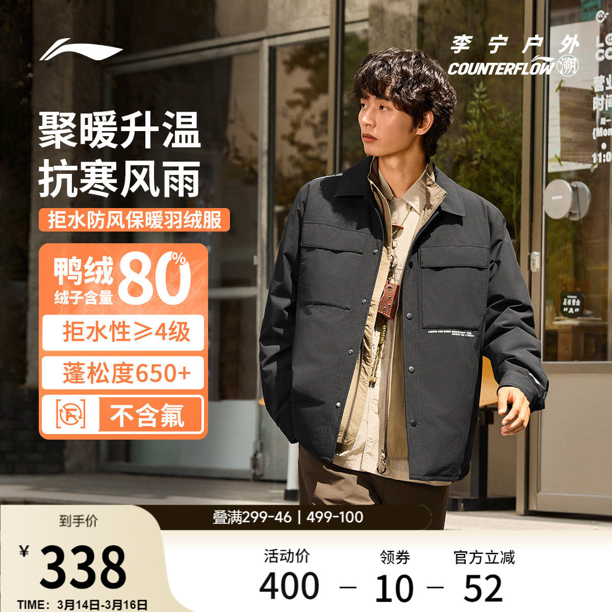 李宁户外CF溯|短款羽绒服男士宽松鸭绒运动服休闲宽松外套男式