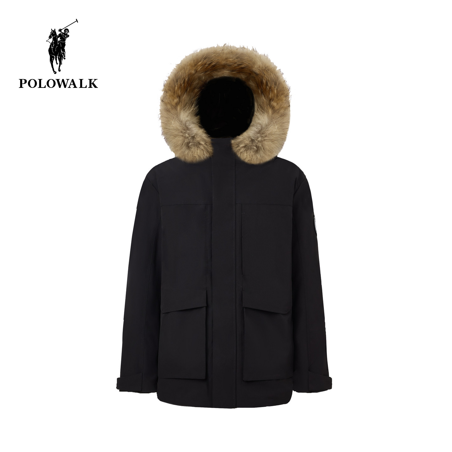 POLOWALK男式羽绒服2025冬季新品90鸭绒连帽貉子毛领中长款羽绒服