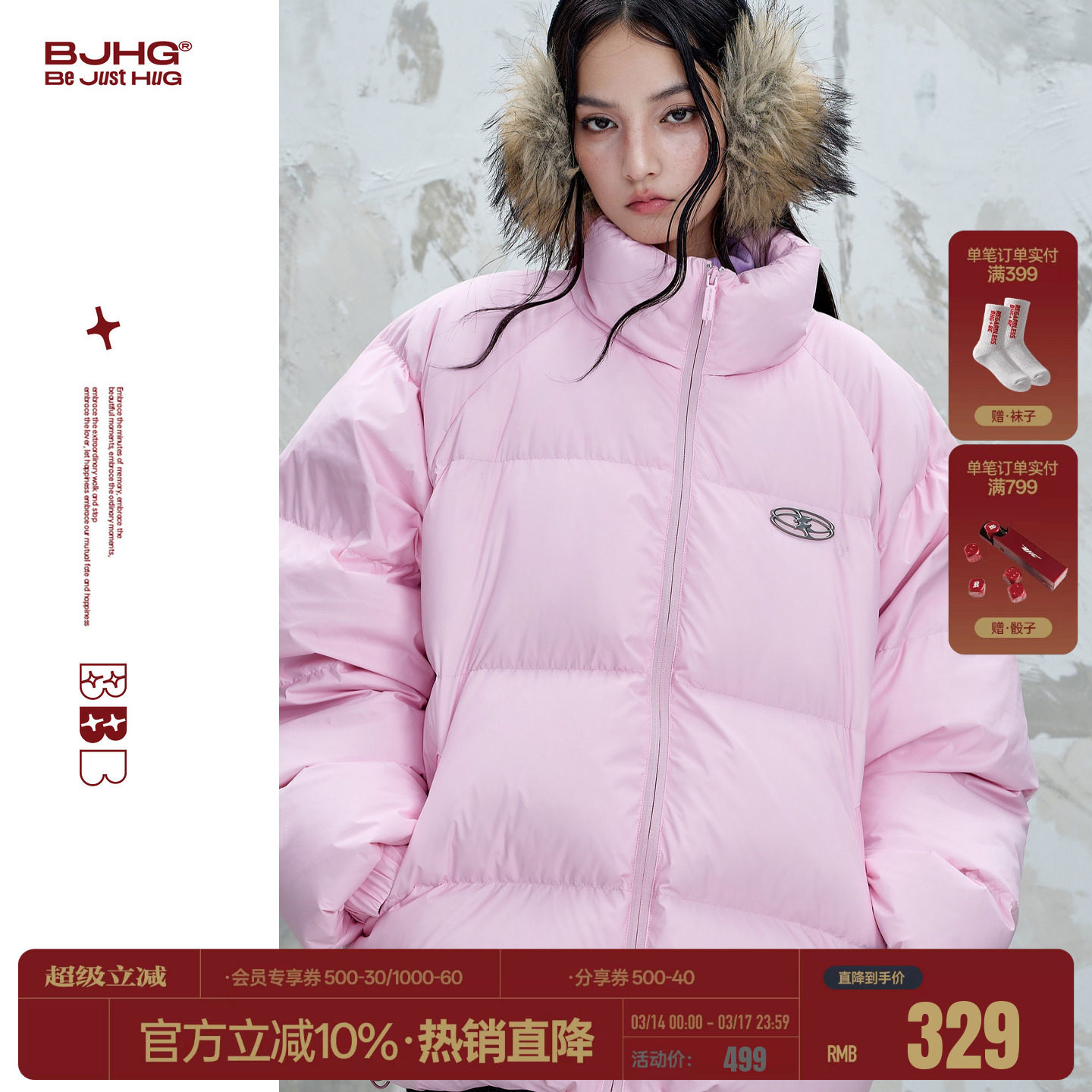 BJHG不计后果男式羽绒服女款冬季新款短宽潮牌宽松立领羽绒外套女