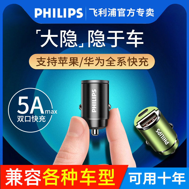 飞利浦车载充电器快充一拖二汽车点烟器转换插头usb插座隐形车充