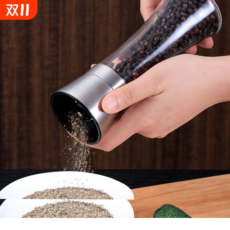 胡椒研磨器手动磨海盐花椒粒胡椒粉神器调料瓶不锈钢研磨瓶调料罐