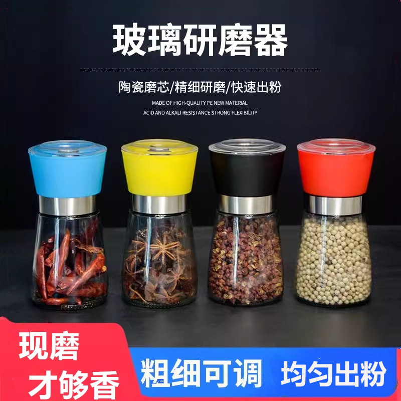 碳钢芯胡椒研磨器手动旋转式玻璃调料家用厨房花椒白胡椒磨粉神器