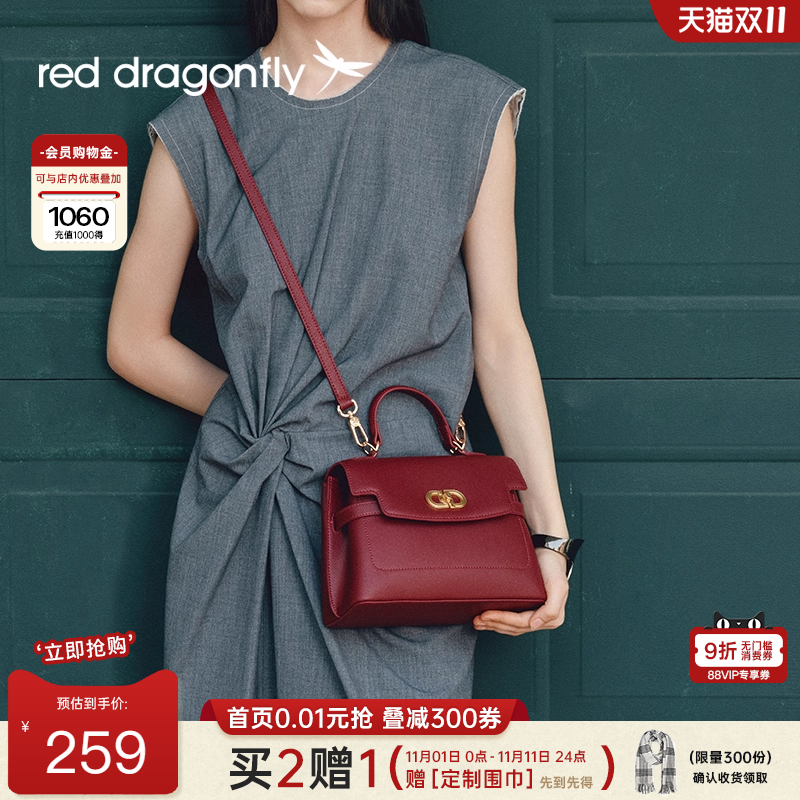红蜻蜓斜挎包女士红色新娘婚包新款秋冬气质高级中年妈妈款单肩包