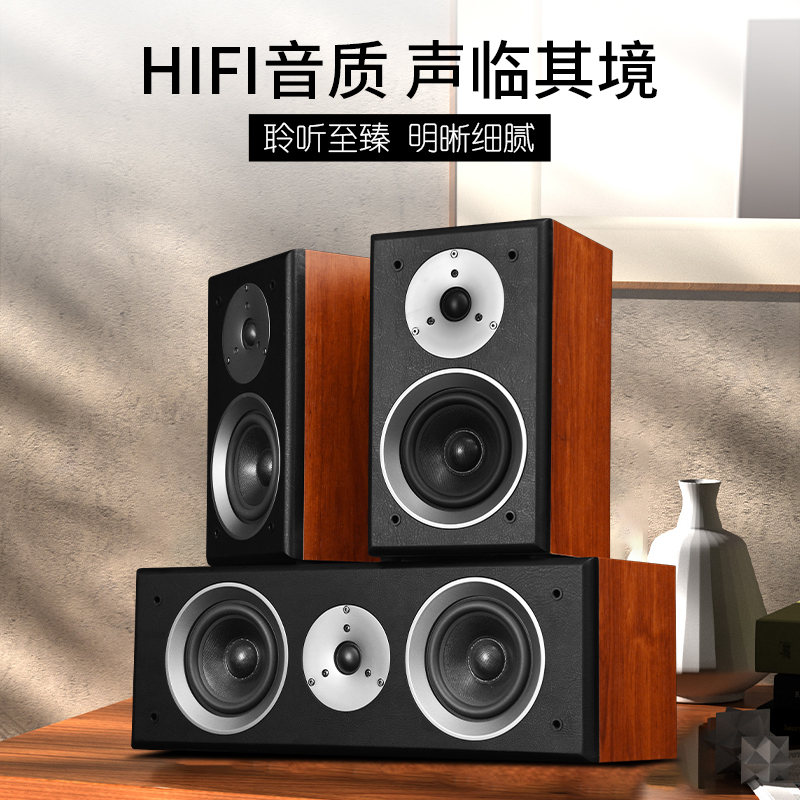 5寸3件套hifi无源音箱木质家庭影院中环中置环绕发烧级套装音响