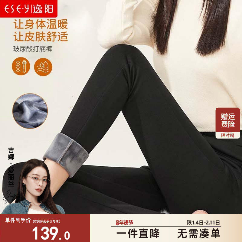逸阳高腰加绒打底裤女修身显瘦2025冬季新款加厚保暖休闲小脚裤子