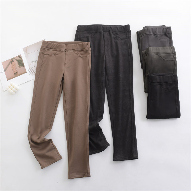 女童百搭加绒直筒裤秋冬季儿童外穿休闲裤中大童加厚窄版小脚裤子