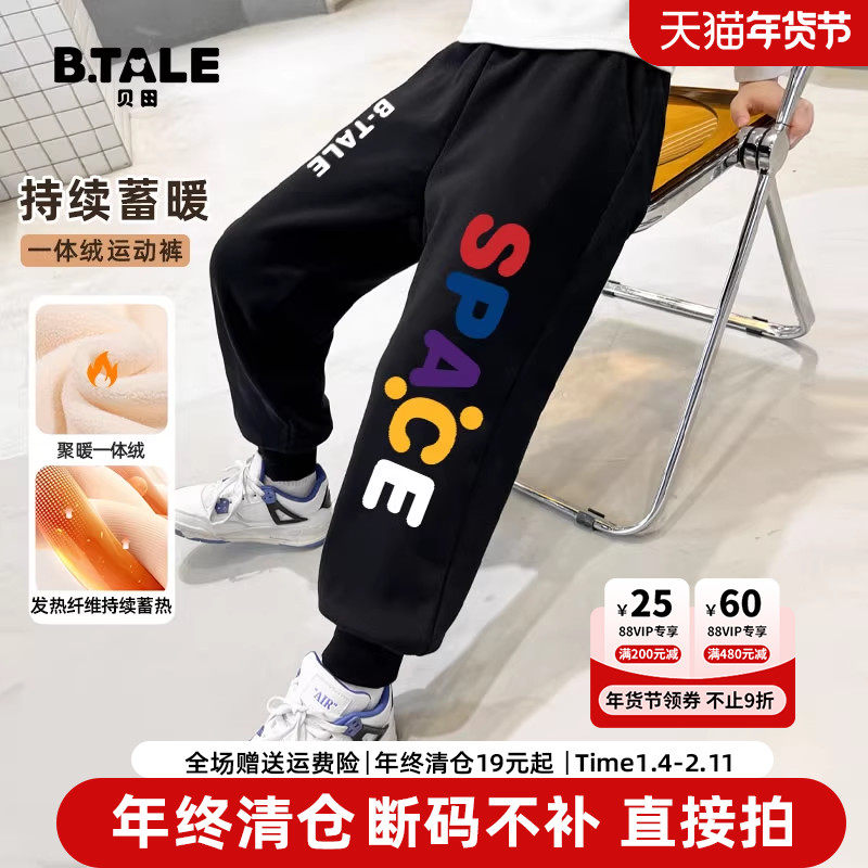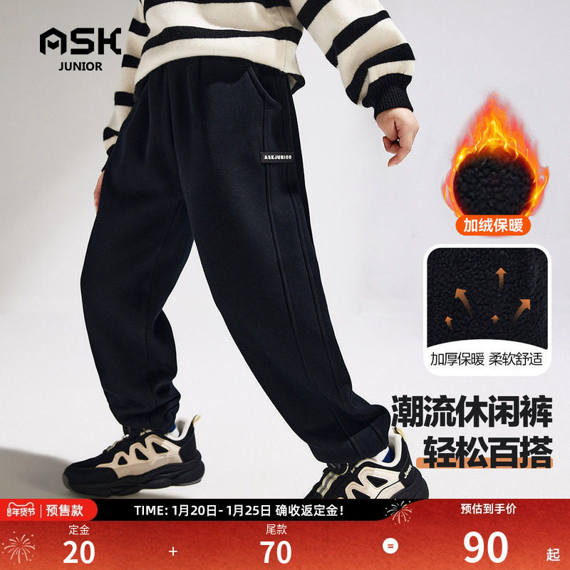 真维斯男童加绒裤子春秋款2026新款痞帅卫裤羊羔绒长裤儿童运动裤