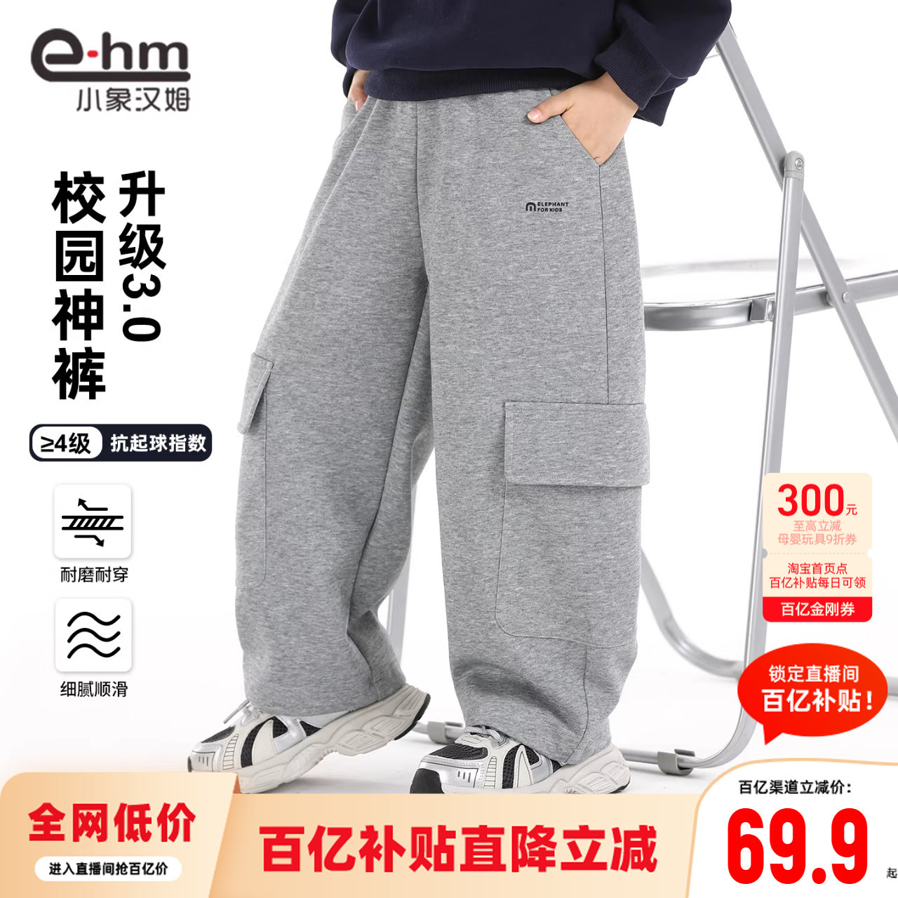 小象汉姆童装男童运动裤工装长裤儿童宽松弯刀裤大童2026春装新款