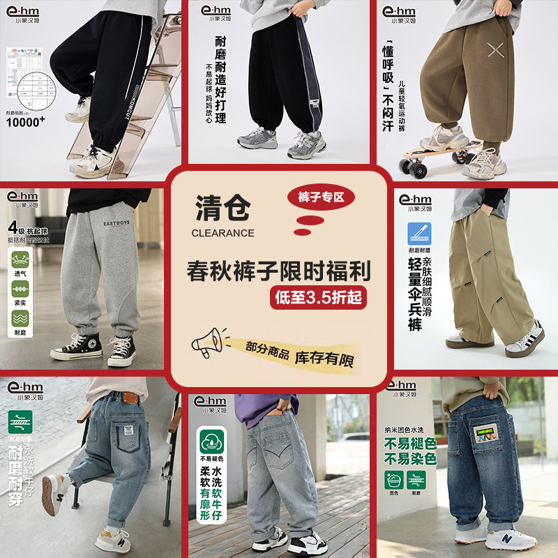 [低至3.5折断码福利]小象汉姆男童装长裤子2026新品儿童春长裤