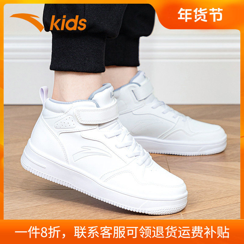 安踏儿童小白鞋大童男鞋冬季2025新款白色板鞋男童小学生高帮潮鞋