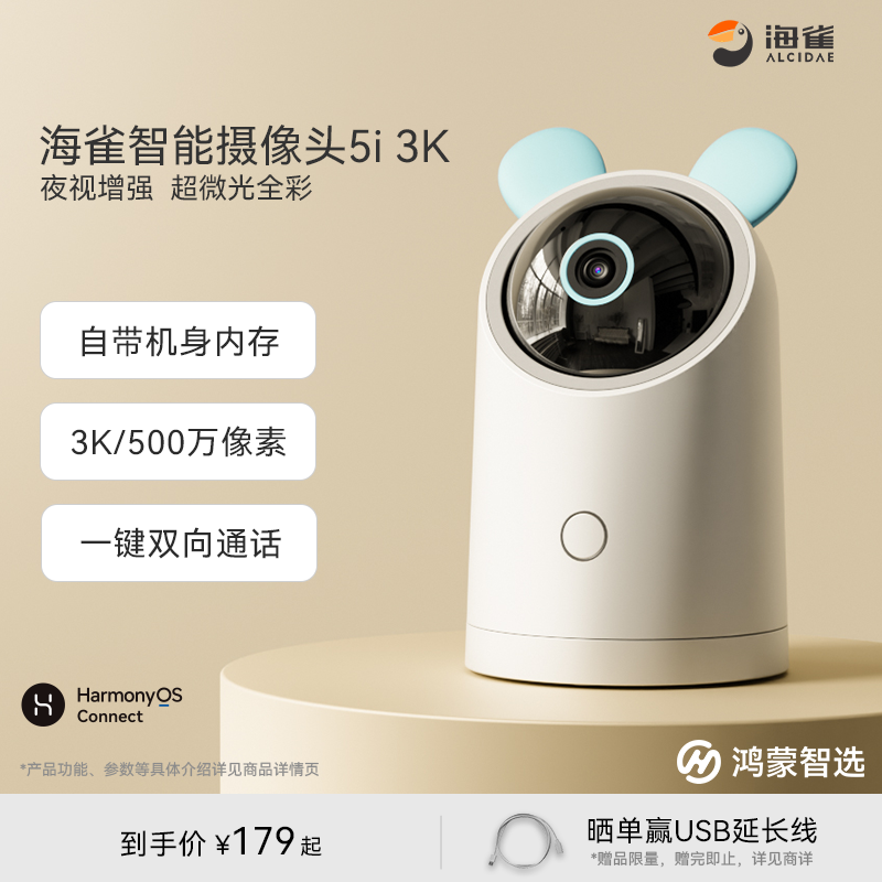鸿蒙智选海雀智能摄像头5i室内家用手机远程360°无线监控摄像机