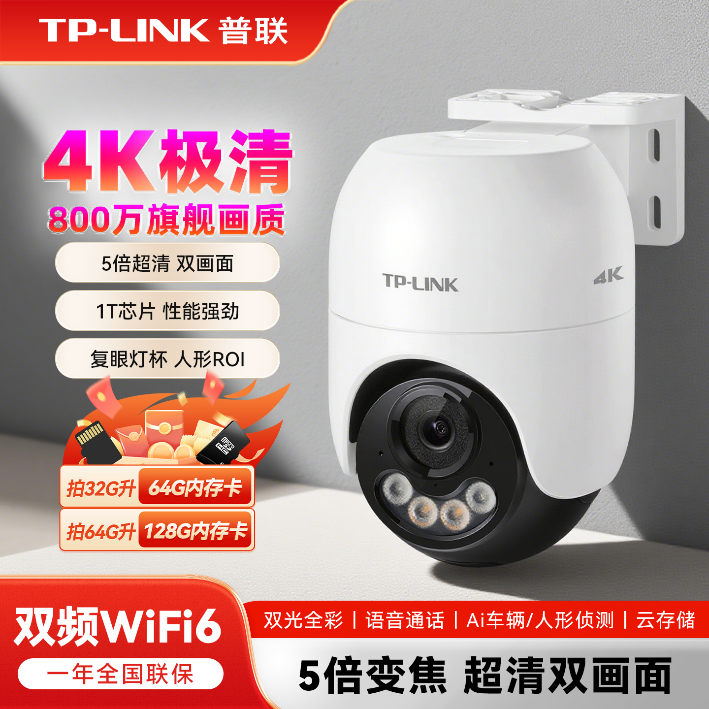 双频WiFi6无线监控摄像头800万4K高清夜视室外防水双画面5倍变焦