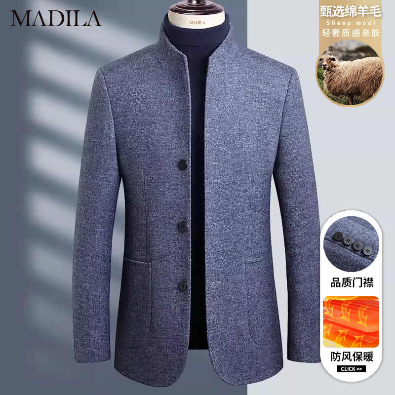 秋冬季毛呢中山装男士修身中华立领羊绒西服羊毛中式休闲商务外套