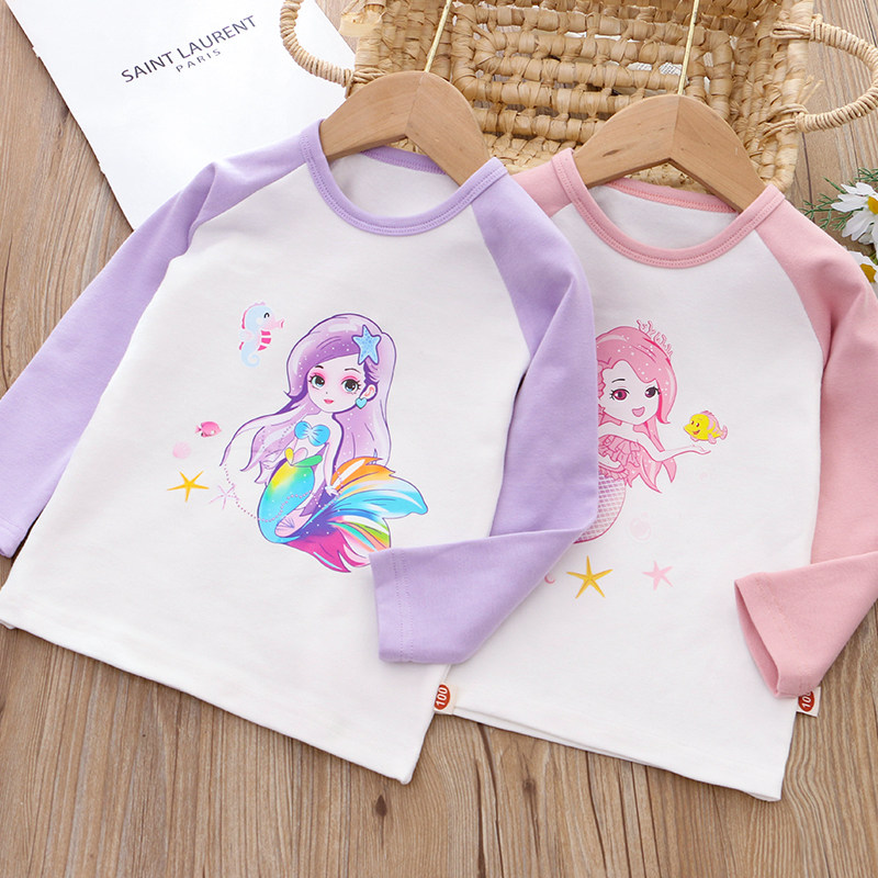 女童纯棉长袖圆领T恤 春秋新款儿童装宝宝女孩卡通百搭外穿打底衫