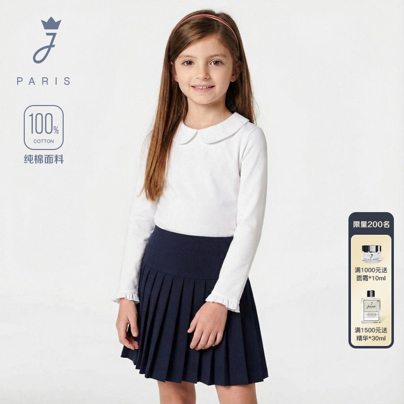 Jacadi亚卡迪法国女童纯棉长袖T恤春季新款花边领百搭上衣2043920