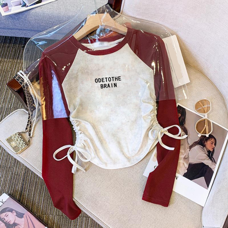 女童纯棉长袖t恤抽绳短款打底衫春秋装2025新款儿童插肩袖上衣服