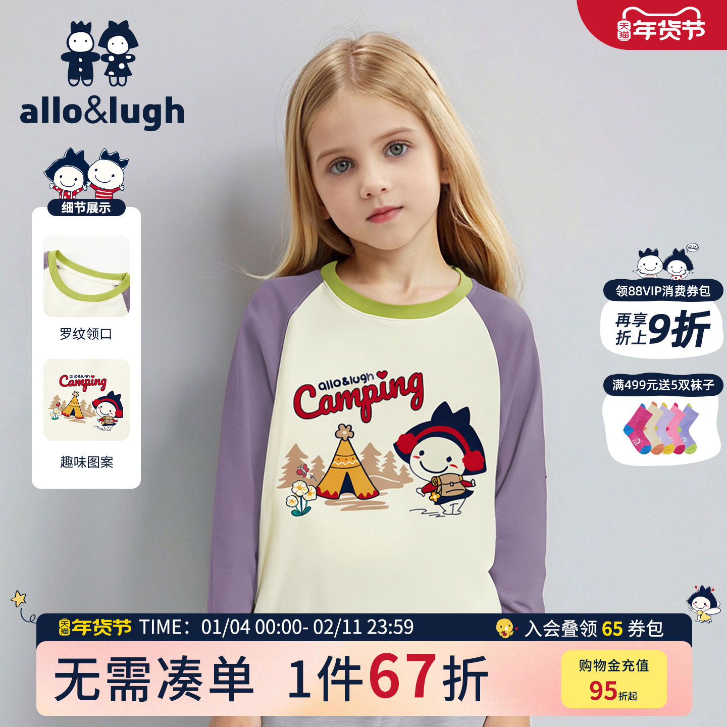 阿路和如男女童纯棉长袖T恤25年秋冬新户外休闲拼接撞色保暖上装