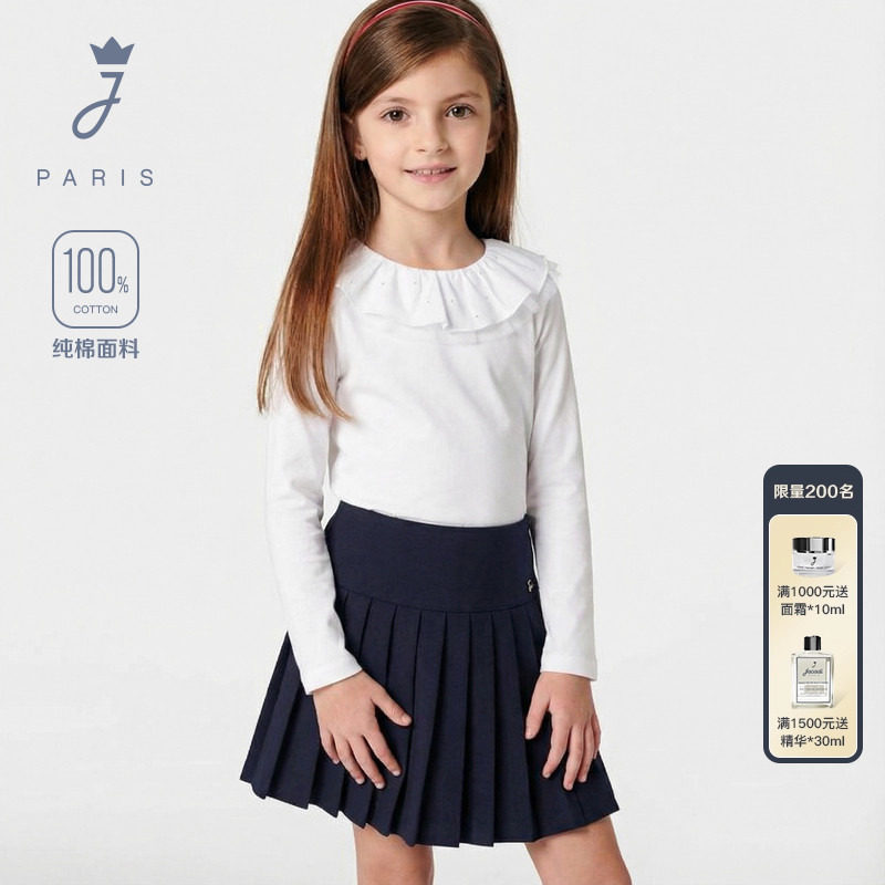 Jacadi亚卡迪法国女童纯棉长袖T恤春季新品休闲百搭上衣潮2043485