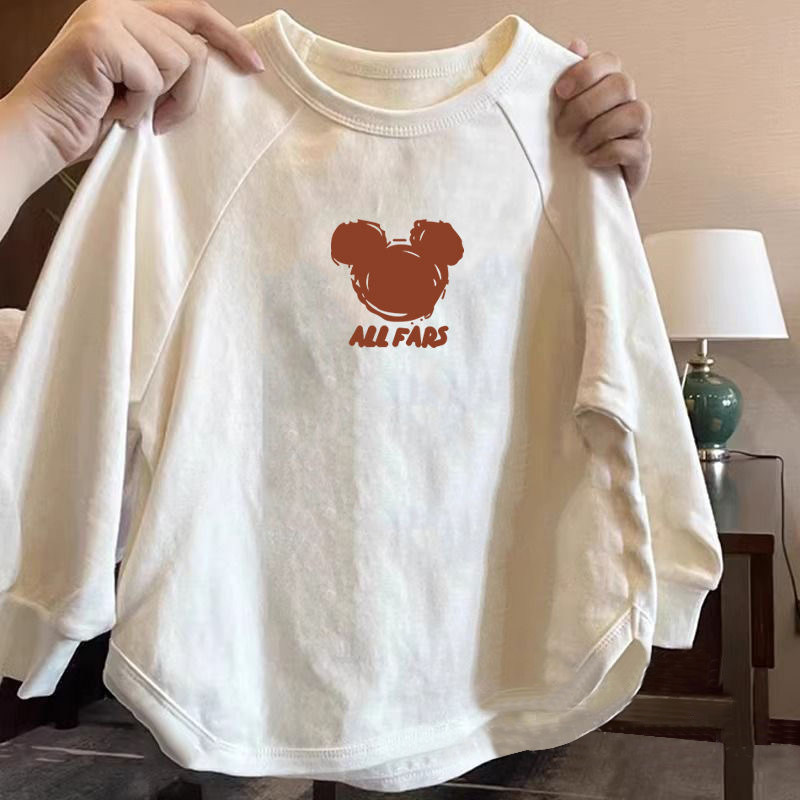 女童纯棉长袖T恤秋季新款儿童洋气卡通中大童宽松运动百搭打底衫