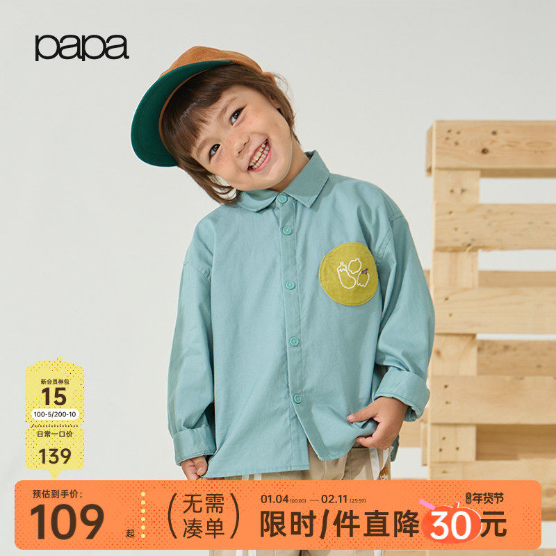 【新品】papa爬爬秋季儿童衬衫薄款外套男童女童纯棉长袖翻领上衣