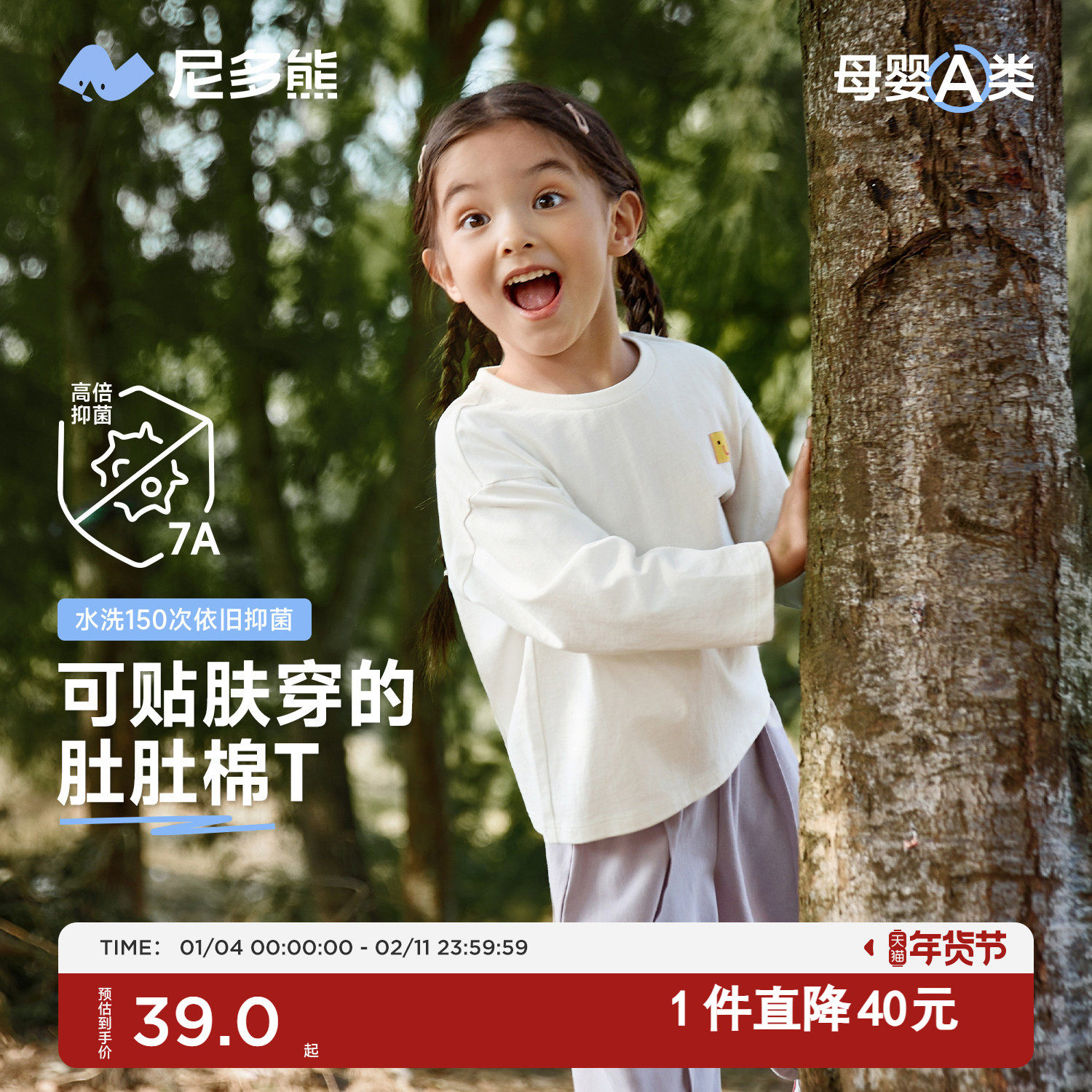 【7A抑菌】尼多熊25春秋新款儿童T恤男女童纯棉长袖宝宝休闲秋装