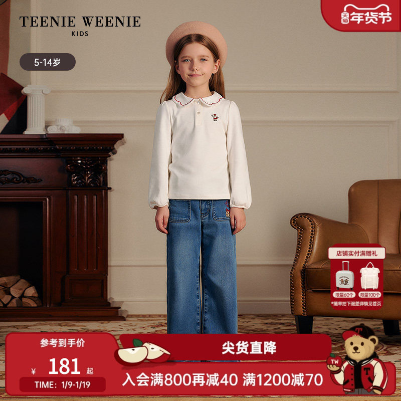 TeenieWeenie Kids小熊童装25年女童纯棉长袖花边翻领T恤衫打底衫