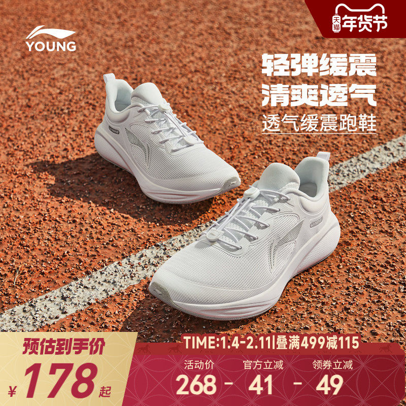 李宁骄阳跑步鞋运动鞋男款女跑鞋儿童白色青少年体测中考体育专用