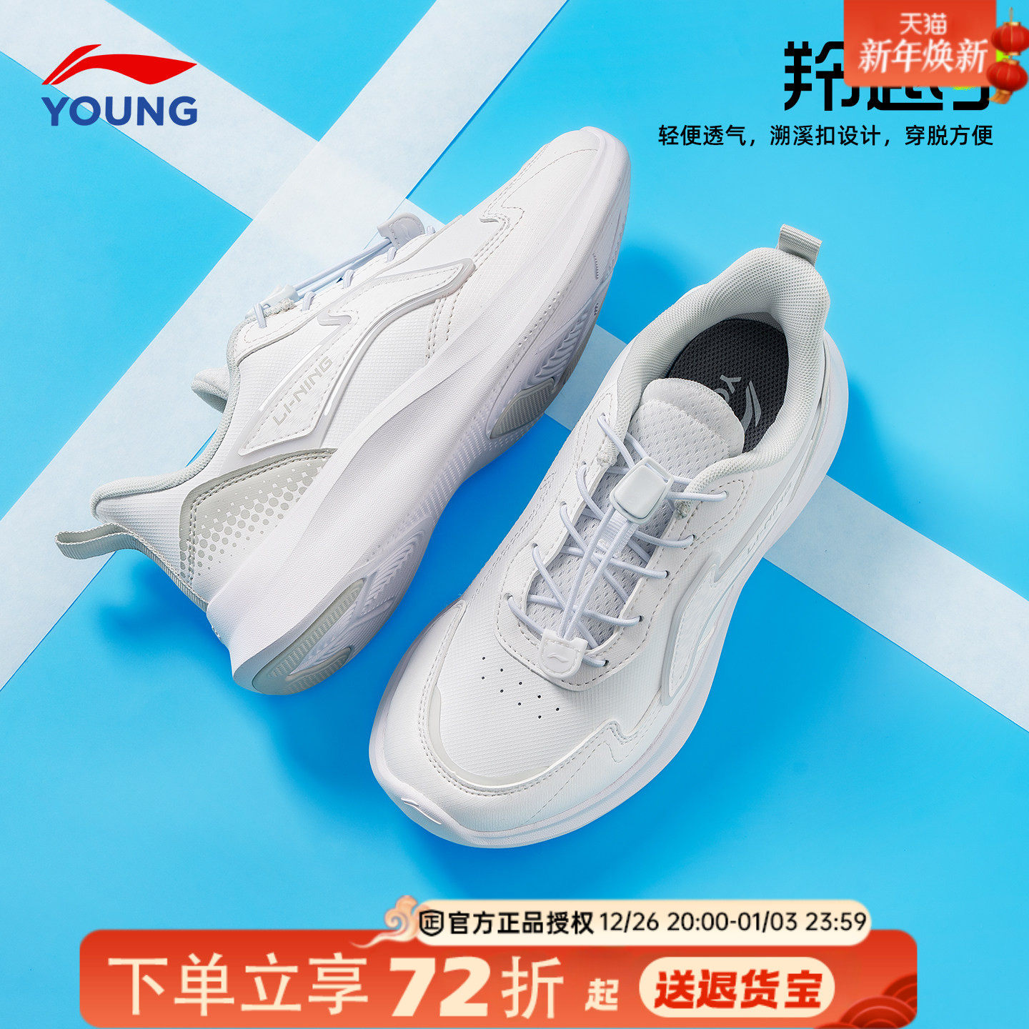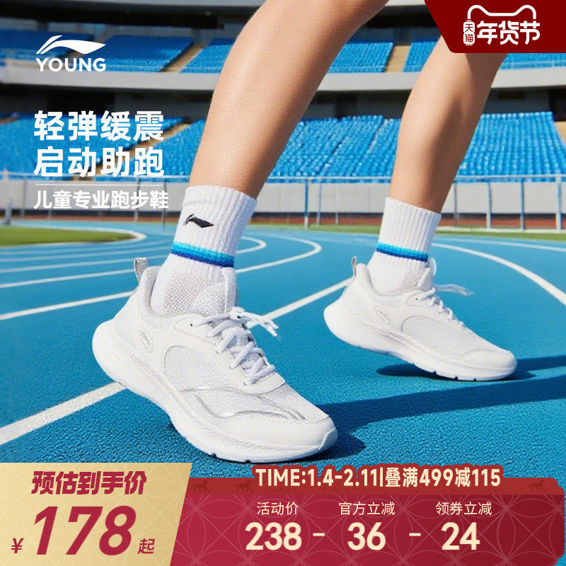 李宁儿童运动鞋男童小白鞋2026新款羚越男女大童青少年白色跑步鞋