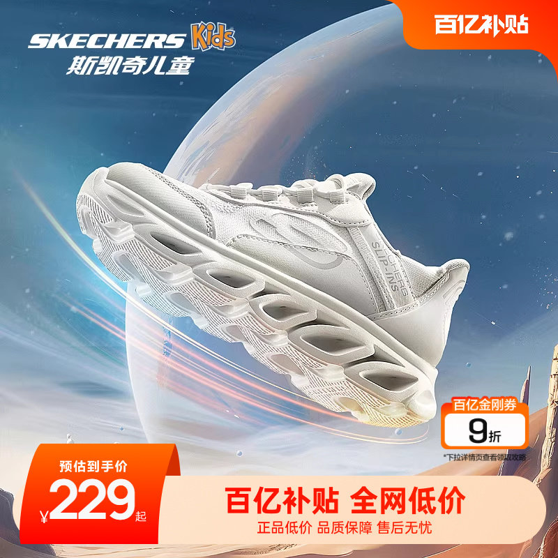 斯凯奇云感闪穿鞋儿童一脚蹬男女童时尚秋冬白色运动鞋休闲跑步鞋