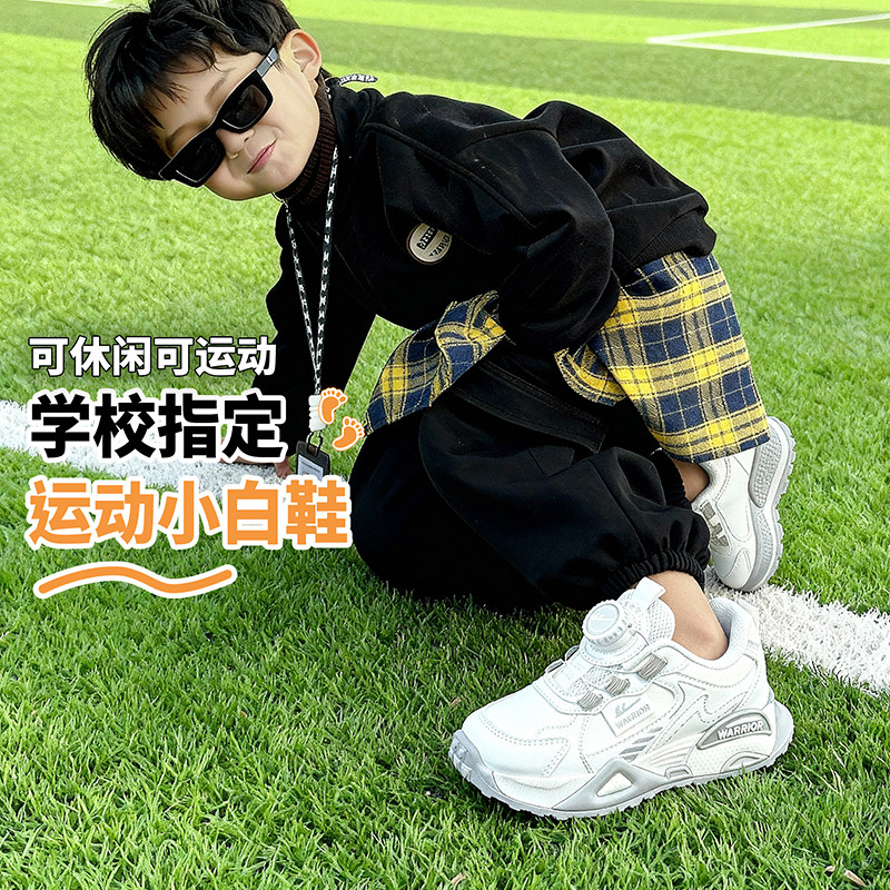 回力童鞋儿童运动鞋子秋季2025新款男童小白鞋校园白色皮面跑步鞋