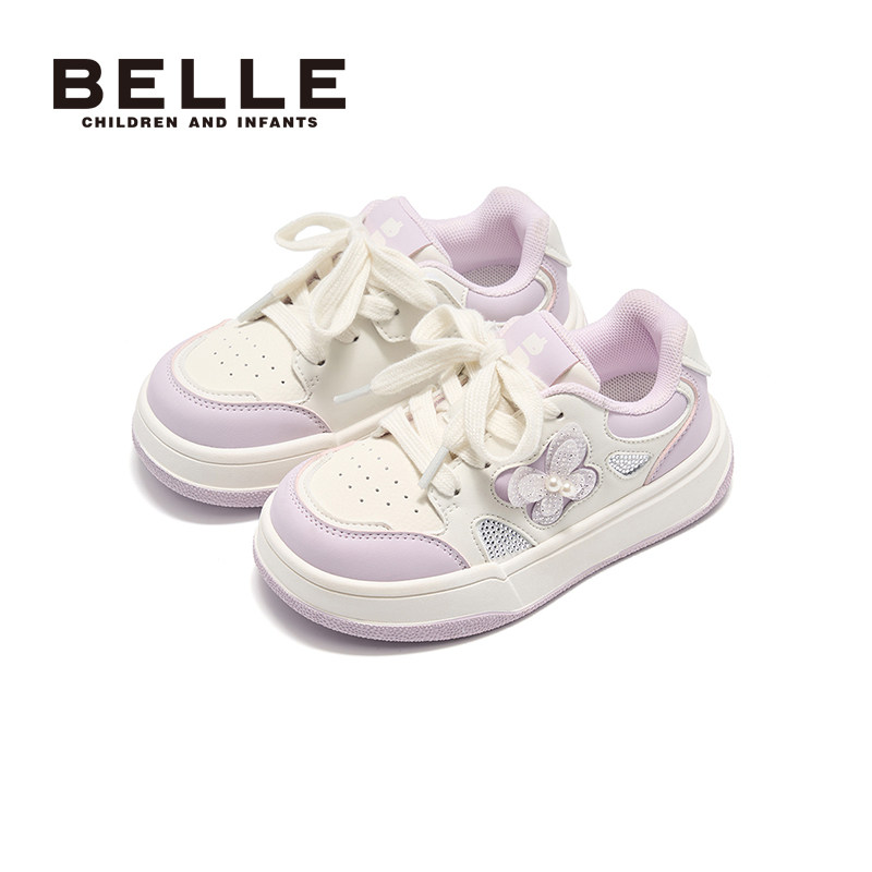 百丽童鞋儿童小白鞋女童白色公主板鞋学生校园软底轻便运动跑步鞋