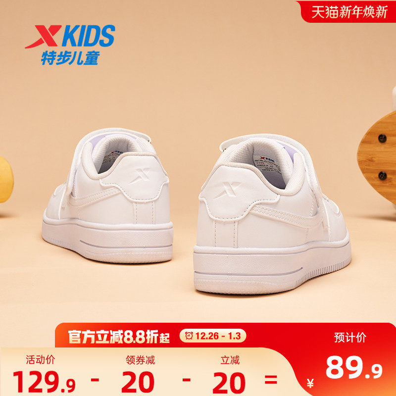 特步童鞋儿童小白鞋男童板鞋运动鞋白色休闲鞋跑步鞋女童耐磨鞋子