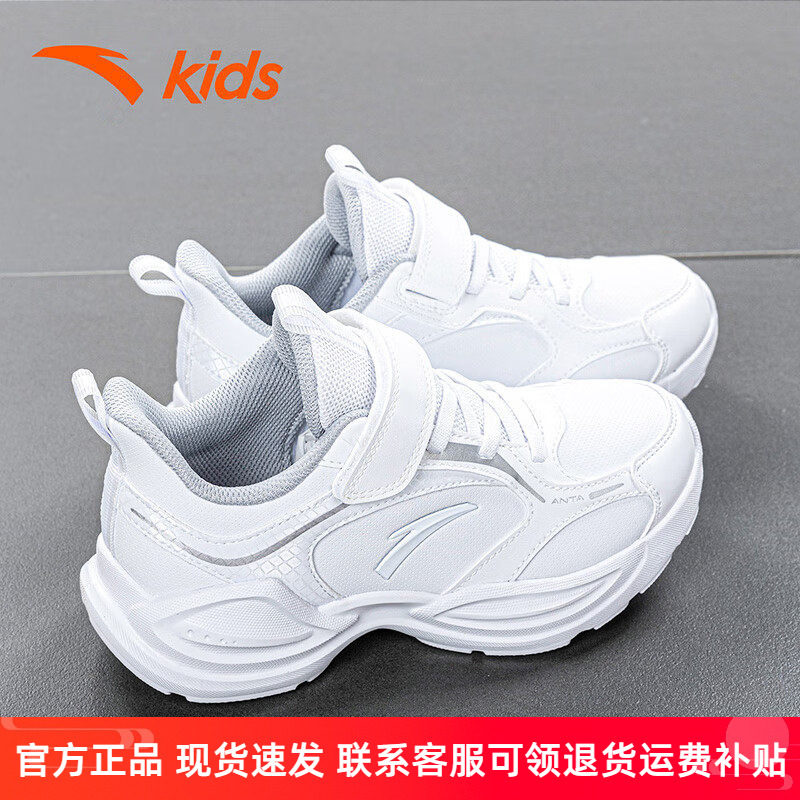 安踏童鞋儿童小白鞋冬季新款男童白色运动鞋网鞋中大童皮面跑步鞋