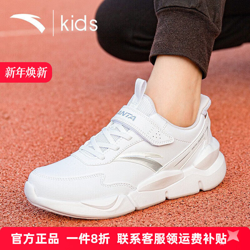 安踏童鞋儿童小白鞋冬季男童白色运动鞋网面透气中大童轻便跑步鞋