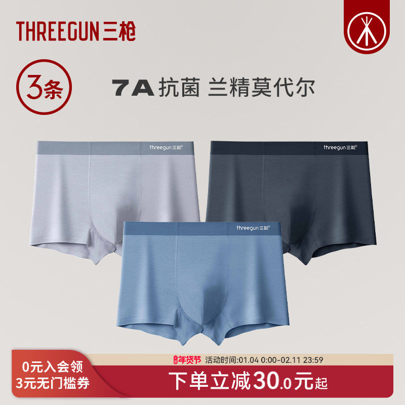 [3条]三枪内裤男莫代尔7A抗菌无痕裸感透气学生运动短裤弹力防磨