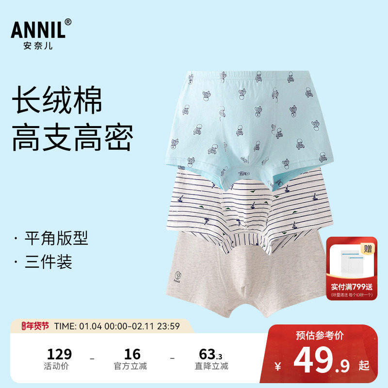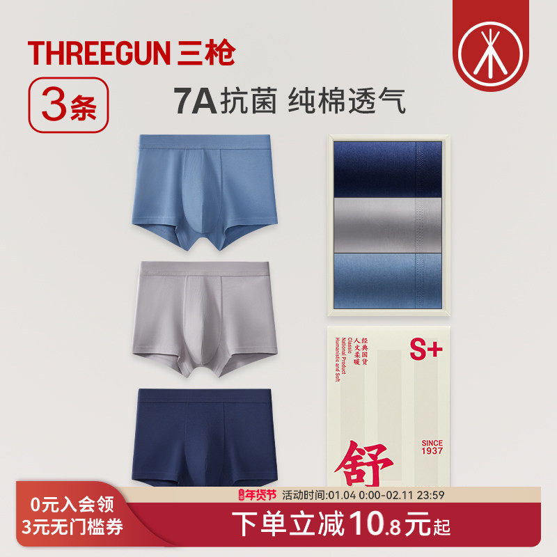 3条装三枪内裤男纯棉7A抗菌弹力防磨透气平角短裤运动学生通勤