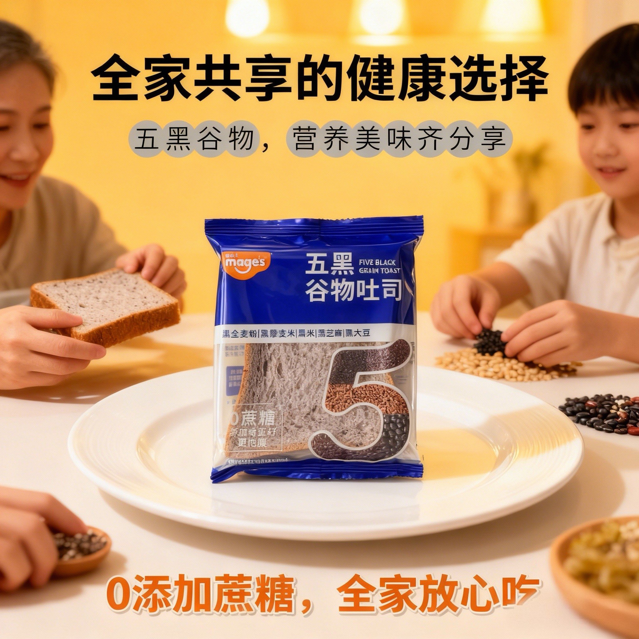 麦吉士无蔗糖五黑谷物吐司奇亚籽黑全麦面包营养健康早餐550g
