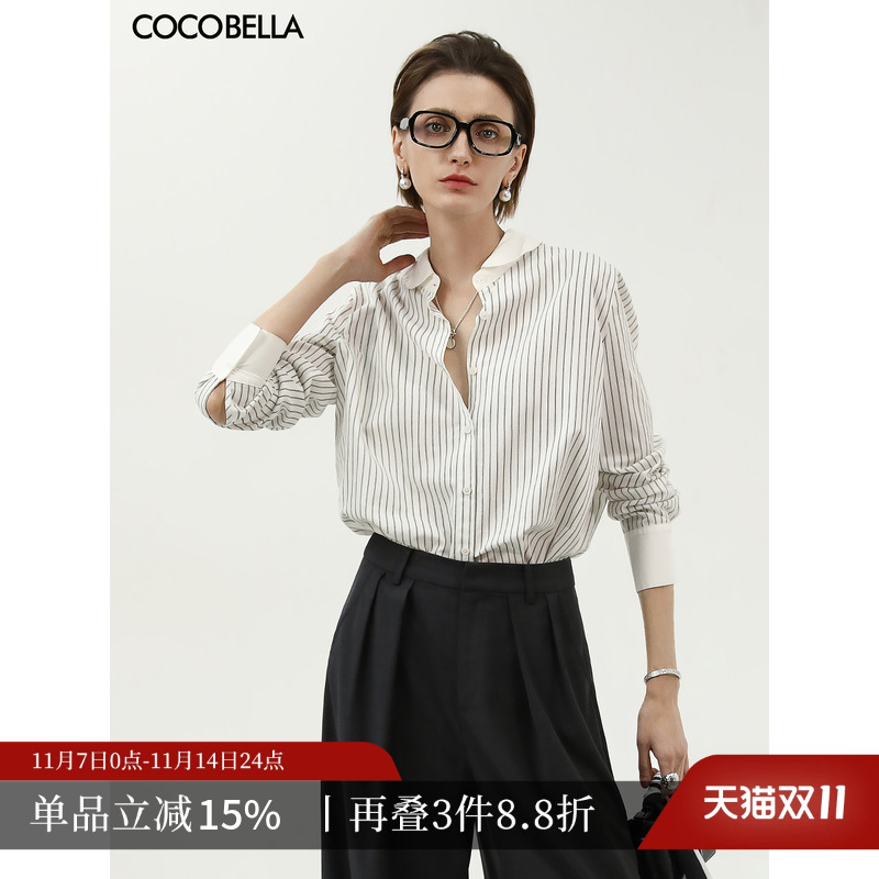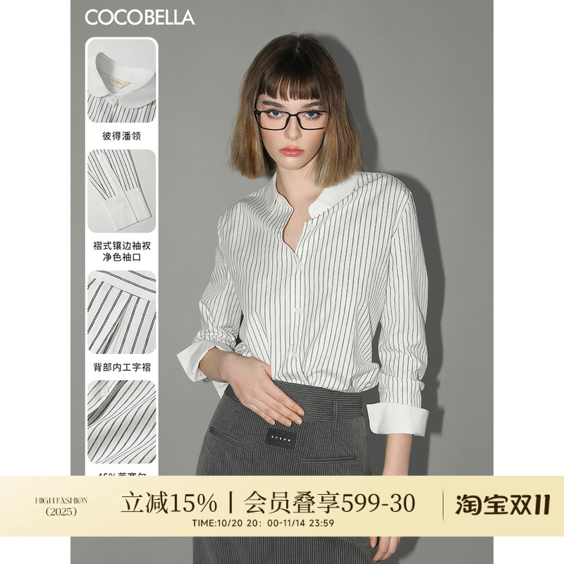 COCOBELLA[莱赛尔]高智感彼得潘领条纹衬衫女秋通勤衬衣SR7002-2