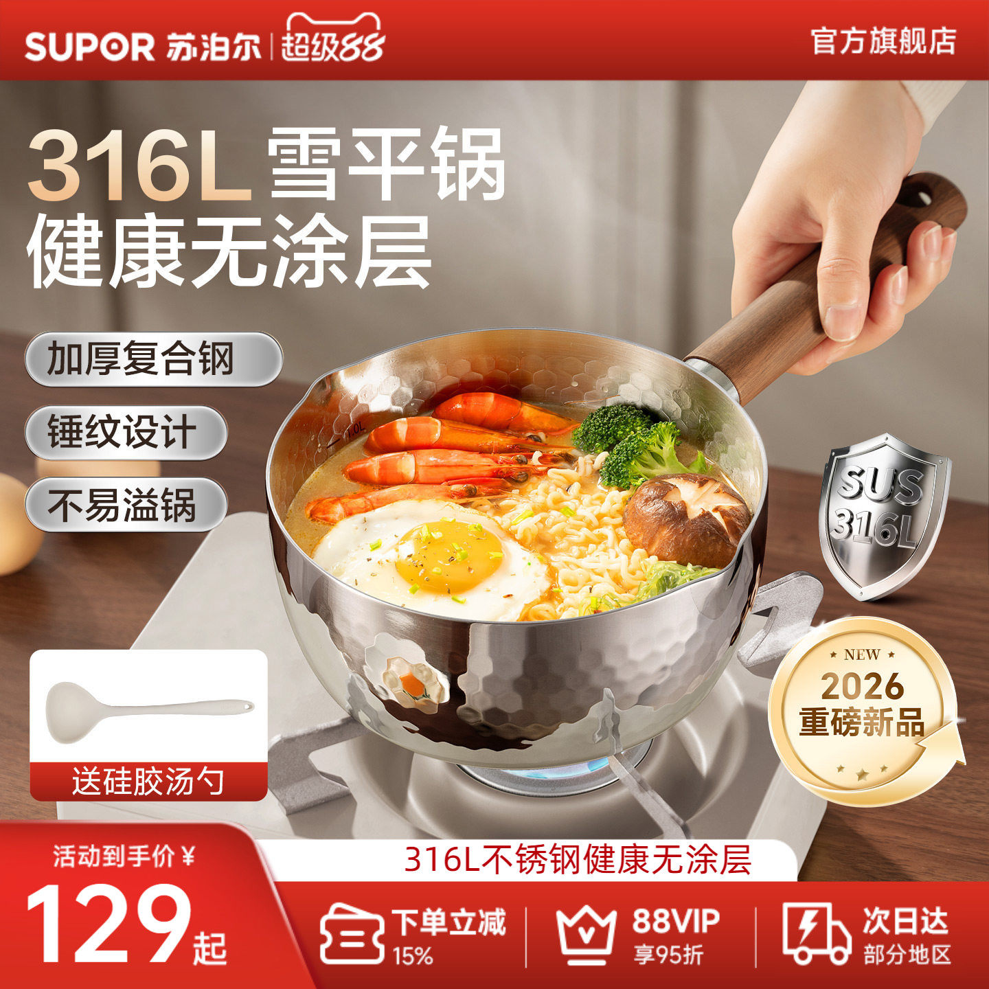 【新品】苏泊尔雪平锅316L加厚不锈钢小奶锅宝宝辅食锅汤锅泡面锅