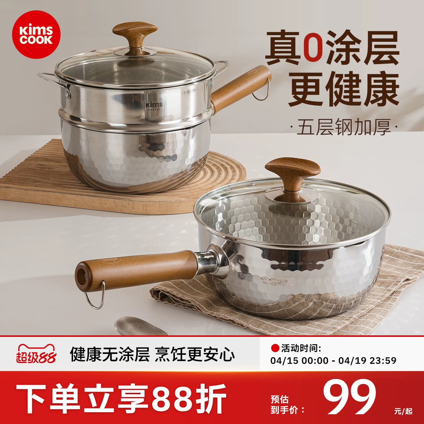kimscook雪平锅无涂层小奶锅一人食小锅不锈钢家用宝宝泡面锅汤锅